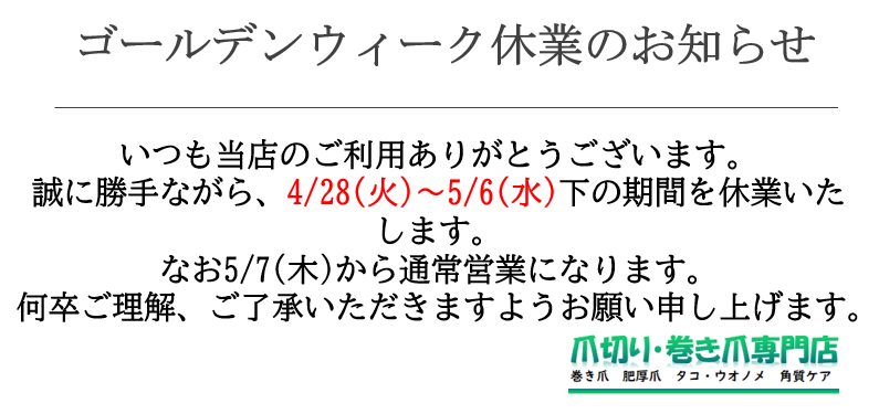 また足元のケアは見えない部分なのでおろそかにしがちです。放置すると痛みが出たり、角質が蓄積し臭いの原因になっている場合もあります。足のお悩みありませんか?佐野市、舘林市近隣で爪切りや巻き爪、フットケアでお悩みの方は是非ご相談下さい。